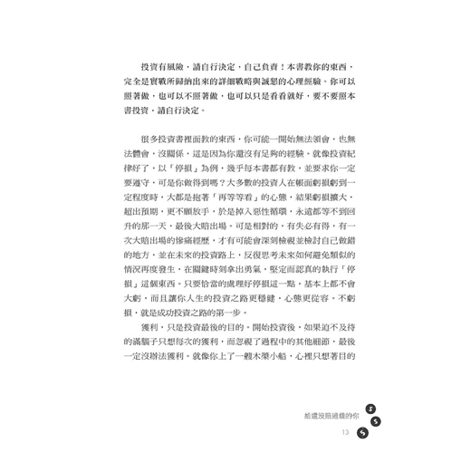 ◎内含投資心態的分享,尤其是足以駕馭貪和懼的紀律。