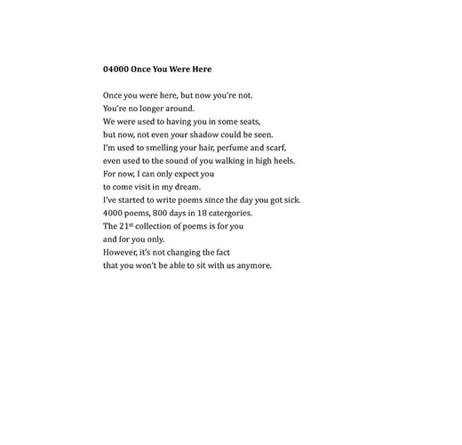 此次的選集,接續21冊詩集,收錄了一年來持續對淑基的思念。
