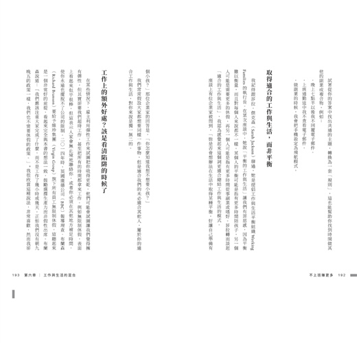 「要如何才能排除聲浪、建立年資、創造出我們的成功定義?」、「在這個人家要求我們追逐無止境終點線的世界上,我們該如何才能更快樂、更充分地發揮自我?」作者點出的這些疑惑,正是我們每一個人應該問自己的問題。
