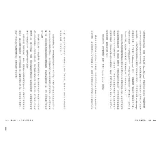 讀這本書讓我感覺很親切,又有幾分熟悉感。我想,也許是因為本書作者的經歷和自己有幾分相像吧?我們同樣出身媒體,但又具有部落客的網路身分。當然,也基於多面向發展職場經歷的緣故,讓我們得以順理成章地成為複合式工作者,並且透過靈活工作的風格,兼顧生活品質和彈性工時。