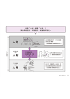 因此,我們需要一個從定義出發,適用於不斷變化的現代職場方法論。這本書做了一個很好的嘗試:首先,它保留日本圖解書籍的常見優點,以懶人包的方式來讓讀者迅速進入狀況。其次,在涉及專業領域知識的地方,它由名詞解釋開始展開,詳細闡述了整個職場知識體系的脈絡。最後,針對職場的不同階段與角色,從一般上班族、人力資源專業、主管,甚至是社會新鮮人與學生,都提供了針對性的建議。整體而言,是一本深度與廣度兼具,使用者體驗良好的工具書,從職場的門外漢到老江湖,都能有不同收穫的職場叢林生存指南。