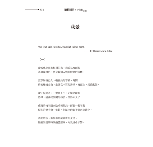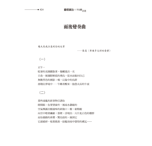 ★在語言本體、時代倫理及文學傳統譜系三者之間達成有新意的闡釋性關係,從而提出富有啟發性的詩學認識裝置、傳奇性的詩歌抒情風貌,以及建構性的抒情主體。