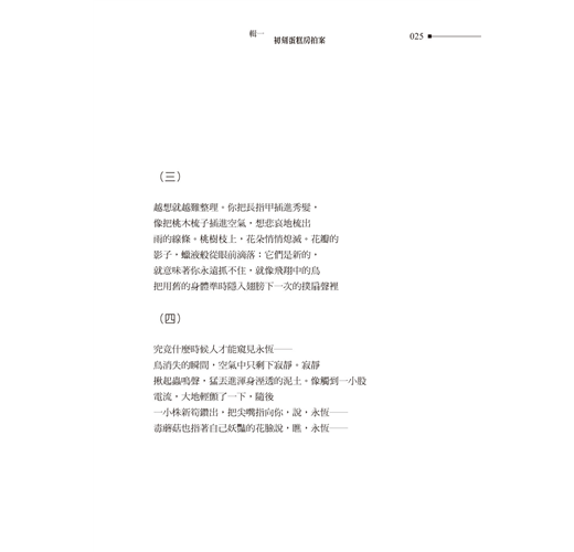 ★本書為陸詩叢其中一冊,收錄中國最新世代且最具代表性的序列,集結各方刊物與學院的認可,眾所期待,隆重推出。