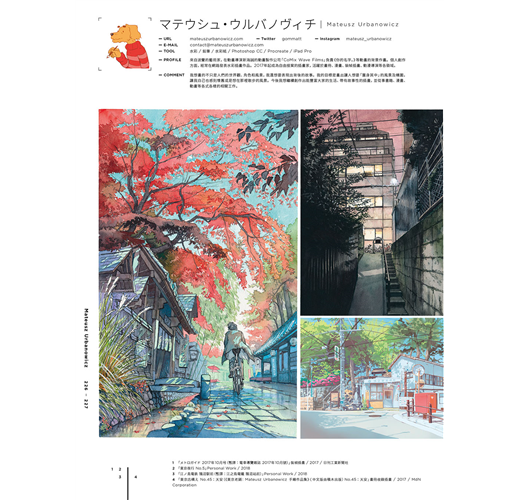 來自波蘭的藝術家,在動畫導演新海誠的動畫製作公司「CoMix Wave Films」負責《你的名字。》等動畫電影的背景作畫。個人創作方面,旅居東京多年,經常在網路發表水彩插畫作品。2016 年在網路上連載「東京老鋪」系列插畫受到廣大迴響後,2017年起成為自由接案的插畫家,活躍於畫冊、漫畫、裝幀插畫、動漫導演等各領域。曾出版插畫集《東京老鋪: Mateusz Urbanowicz 手繪作品集》(中文版由積木出版)。