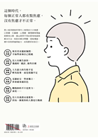 那一瞬間,我才明白,原來焦慮是不分人的,尊貴如天神般的主管,下賤至我這種免洗員工,大家都有自己要處理的焦慮。而書裡所討論的職場焦慮,我都經歷過。第一份工作的重要性?同事之間的爾虞我詐?現在離職是不是就完了?對公司開砲,是否會害得自己被業界封殺?焦慮這件事,作者從存在、成長、選擇、社交、職業、愛情六大項,有系統地探討,沒有單一解方,帶領你認識、學習擁抱焦慮,內外兼修,不迷惘自己的步伐,終而使焦慮成為敲破你舒適圈的槌子,迎向更多可能性的宇宙。