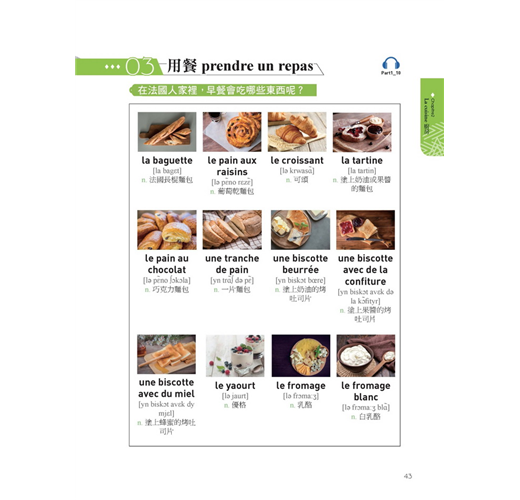 ★從課本、會話銜接大量單字,提升表達能力,在法國各場合中自在地說法語!