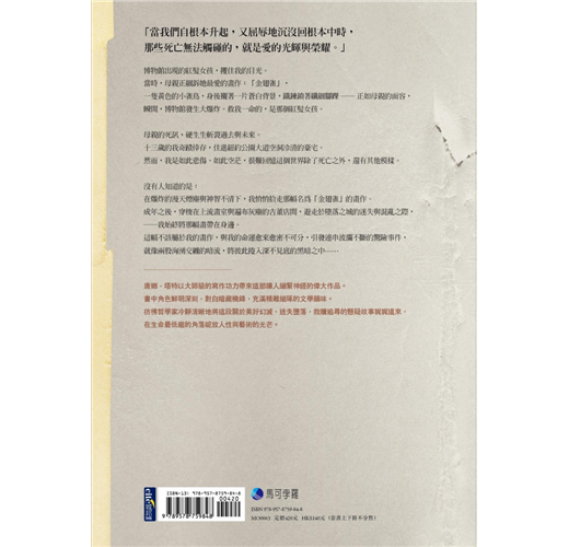 睽違十二年,唐娜.塔特耗費十年時間寫作《金翅雀》,是她三部作品中篇幅最長的。一推出便掀起英美文壇巨浪,橫掃各大年度暢銷榜單,並榮獲2014年普立茲文學獎。