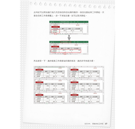 秘技 09. 批次利用工作群組批次修改工作表