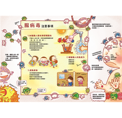 《人體大遊歷3:腸病毒大進擊》的出版,讓父母和孩子可以透過活潑生動的漫畫式圖文書,從輕鬆有趣的閱讀過程,認識腸病毒,並建立正確的保健常識與方法。我們一起來看看。