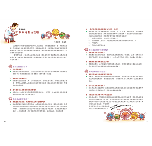 打開這本書,進入腸病毒的世界吧!透過病毒們的對話,就能了解腸病毒相關知識,進而保衛自己的健康。