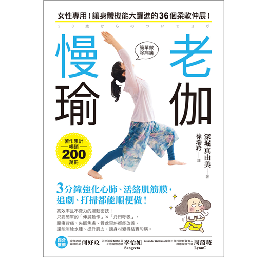 我一直很期待專門為中高齡樂活族群而寫的瑜伽書,因為台灣已經進入高齡化社會,最好的防老保養,是從自己開始!我很開心《慢老瑜伽》的出版,它提供中高年齡族群,自我保健、簡易操作又實用的練習,邀請大家買來送給長輩們或陪伴他們一起學習!
