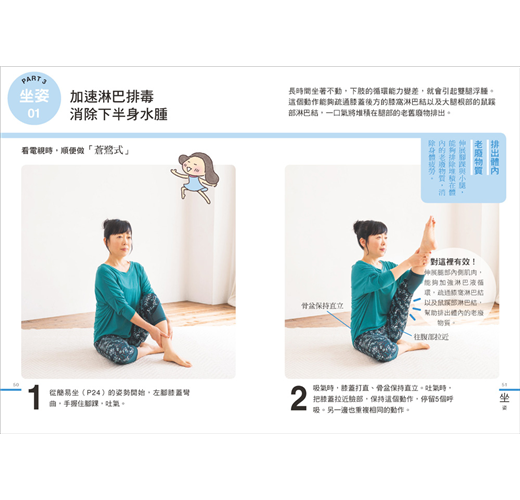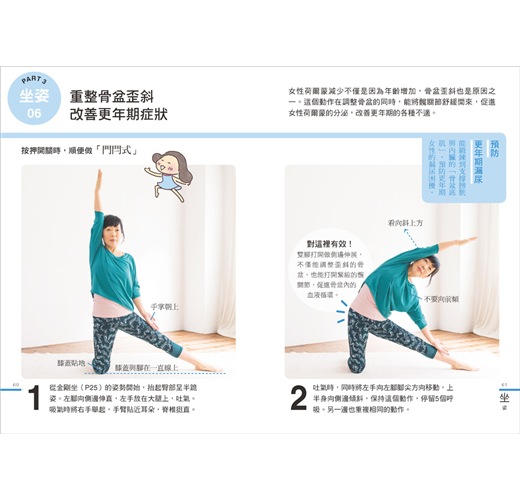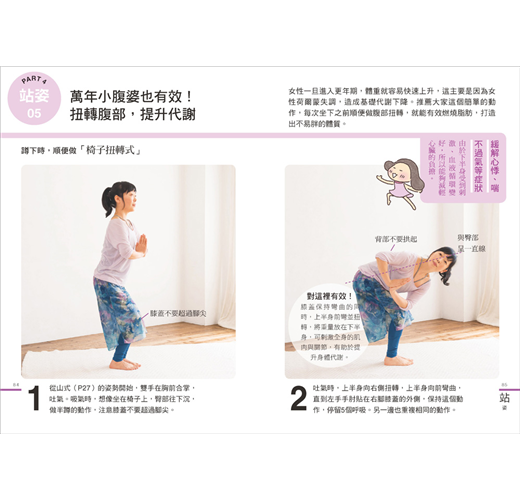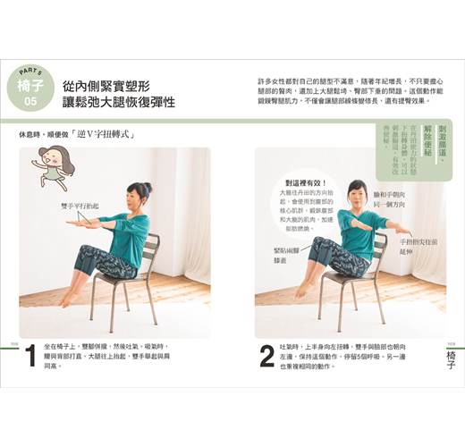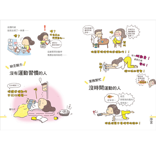 書中完全沒有高難度動作,即使是肌力不足的忙碌上班族、忙著帶小孩而沒時間運動的家庭主婦,以及腿腳無力的中高齡群都能輕鬆完成。
