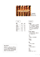 .實用材料表:將麵粉的總計重量以100%計算,並記載材料的烘焙比例。