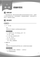 2. 語法說明(含語法練習參考解答):課本中的語法說明以英文呈現,目的是讓學習者能做基本的預習,而手冊中的中文說明,則希望能讓教師視情況運用,在英文說明之外能有所輔助。另外,手冊也提供每個語法的練習參考答案。然在不同環境、班級所提出的各種答案可能與參考答案不同,教師可視情況檢視。下面另列「補充與提醒」,提供當課教學中可能遇到的難點或問題,涵蓋生詞、語法、語言使用、文化意涵等項目,給予教師實用的教學技巧或可運用之教學素材。
