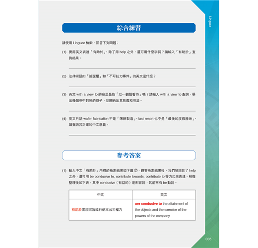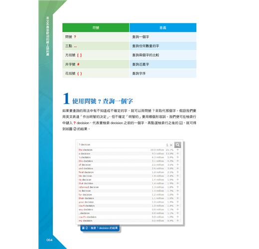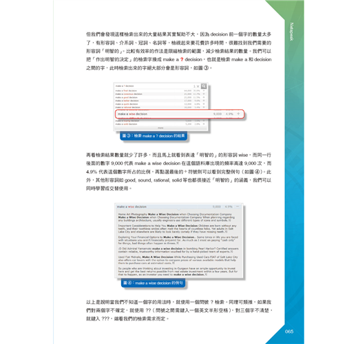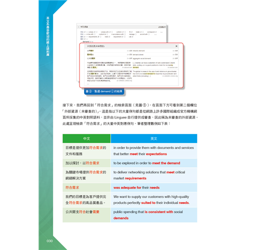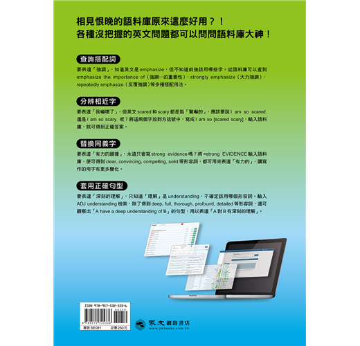 傳統學習英文的方式大多是苦讀教科書裡的字彙、句型和文法,但讀過後如果沒有機會使用,很快就忘掉了,學習成果難以持續。近年來由於數位科技的突飛猛進,以語料庫輔助外語學習成為全球的趨勢。不僅各大學外語科系紛紛開始教授語料庫或電腦輔助外語學習的課程,國內外許多學者專家也都努力開發建置各種型態的語料庫來造福使用者。而語料庫的好處就是可針對自己在使用英文時碰到的問題來檢索解答,在解決問題的過程中可培養對英文的分析理解能力,找到答案後又具有成就感,容易記得所學的內容,這與傳統看書學英文的方式有很大的不同。 國內近來在網路上分享英文語料檢索工具的網站愈來愈多(如研究生2.0、電腦玩物、商周.com等),也引起學習者的興趣,許多人不斷在網路上大量地轉貼和分享,似乎為痛苦的英文學習過程帶來了新希望。不過網路上這些介紹語料庫的網頁內容有限,只以簡短篇幅說明一兩個功能或例子,未能詳述檢索和分析語料的思考過程,也沒有提供後續查詢語料的練習。許多學習者可能興奮地依樣畫葫蘆在電腦上操作一番後就結束了,也不清楚該如何應用在自己的英文寫作上,難以充分發揮這些語料庫的功能和特色,相當可惜。 筆者過去撰寫《英文論文寫作不求人》和《英文論文寫作不求人2》二書,就是提倡以線上英文學習資源和語料庫來協助撰寫英文研究論文,出版後頗受國內師生歡迎,很快就銷售一空並再刷。但是線上網站的連結網址經常變動,網頁改版頻繁,有些網站甚至突然就憑空消失,也有新網站橫空出世。因此筆者和出版社把這一書系定位在輕薄的雜誌型態,每隔一段時間再因應最新的網站工具來更新內容,出版新書。 而本書之目的就是精選目前在英語教學領域最受歡迎的語料庫網站,說明其使用方法,並應用在英文的詞彙搭配與句型寫作上。本書以國人在英文寫作過程中經常出現的錯誤和疑難為案例,引導讀者使用線上語料庫工具,再透過語料庫的網頁截圖,詳盡呈現每一個操作步驟,協助讀者針對自己的英文寫作來糾錯解惑。此外,書中還提供檢索和分析語料的「綜合練習」,希望讀者可以透過實際操作,以加深學習印象。筆者想強調的是:這不僅是一本用來閱讀的英文學習書,更是一本需要手腦並用的操作手冊。 另外,英文老師參照本書內容,亦有助於驗證學生寫的英文是否正確道地,也可利用檢索出的例句編纂講義教材或測驗試卷。筆者建議教師可在課堂操作語料庫,讓學生看看檢索英文的過程和結果,了解英文詞彙搭配和句型的各種可能性。老師更可以本書作為教材,教導學生如何操作語料庫,落實讓學生自主學習英文的理念。 其實使用語料庫是一種教學範式的翻轉 (paradigm shift),傳統課堂由教師主導「演示、練習、產出」(Present-Practice-Produce) 英文內容,是種以教師和教材為中心的教學模式,常導致學生只是被動接受教師提供的內容,難以內化成為自己的知識技能,學過之後很快就遺忘。然而使用語料庫輔助教學,教學模式轉換成以學生為中心,由學習者親身「觀察、假設、實驗」(Observe-Hypothesize-Experiment) 大量實際英文語料,在過程中必須針對個人的英語問題,投入心力操作語料庫並歸納詞彙搭配和句型用法,最後獲得解答,學生較易內化所習得的知識,並培養帶得走的技能。簡言之,最具成效的學習方式,是由英文學習者針對自己寫作過程遇到的問題,操作語料庫工具,逐步分析歸納所得語料,並有效解決這些問題。 書中大部分的語料庫網站提供全英文的檢索介面和結果,適合中高階程度的學習者;也有一些語料庫能作中英文的檢索並得到中英雙語的語料,則各種程度的學習者皆可使用。不過話說回來,本書只是個開端,因篇幅所限,不可能介紹目前所有語料庫以及列舉所有英文寫作問題,但本書介紹的檢索技巧和分析問題的方式,應可培養讀者舉一反三,自行利用語料庫解決英文寫作問題的能力。 最後,筆者也需說明,語料庫不是解決英文寫作問題的萬靈丹,但它可以作為有效的英文寫作輔助工具。而未來的語料庫類型勢必更加多元,功能不斷創新,更可望與大數據 (big data) 以及人工智慧AI 科技結合,將改變全世界學習英語的模式。處於現今的數位時代,臺灣的英文學習者除了傳統學習英文的方式之外,不妨也培養檢索語料庫的技能,並記得把本書介紹的語料庫平臺網址加到瀏覽器的「我的最愛」或「新增書籤」中,便於有需要時隨時檢索,可使學習英文的成效相乘倍增。