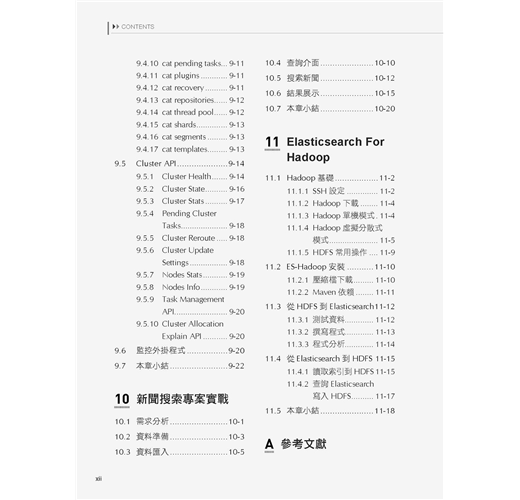 ■ 第11章介紹Elasticsearch和Hadoop大數據平台互動的方法。