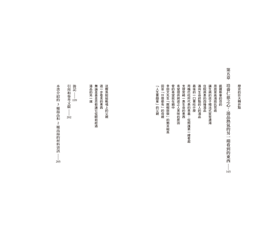 生命與味覺之間的關係是想切也切不斷,然而今日放眼望去,環境污染讓我們漸漸失去安心的食材,料理也都追求簡便快速,人們已遺忘「吃」的本質,更不知該如何才能活得更好。憂心忡忡的作者為世人提出五項指標:「敬畏之心」、「感應力」、「直覺力」、「應變、反應能力」、「溫柔的心」,期望能為後人面臨生存困難的時刻提供解方。