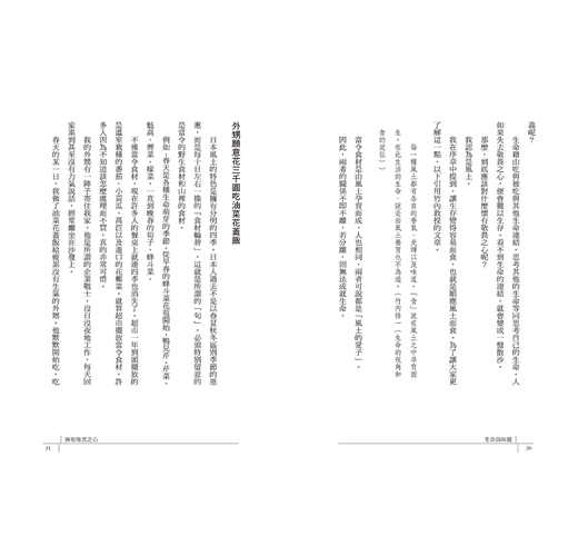 生命藉由「食」與其他生命相接。那麼,我們應該怎麼吃呢?答案非常簡單:讓生存變得容易而食,也就是順應風土而食。