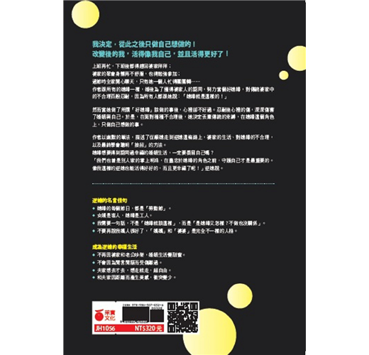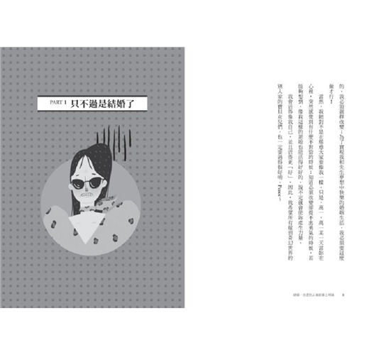 作者和先生婚後,跟所有人的媳婦一樣,為了想融入婆家,獲得婆家人的認同,努力當個好媳婦,上班忙碌了一整天還得趕回婆家拜拜、身體不舒服也得勉強自己參加聚餐,過年過節全家開心聊天,只有她一個人忙得團團轉……對傳統婆家中不合理的要求,她百般忍耐,因為所有人都跟她說:「媳婦就是這樣的!」