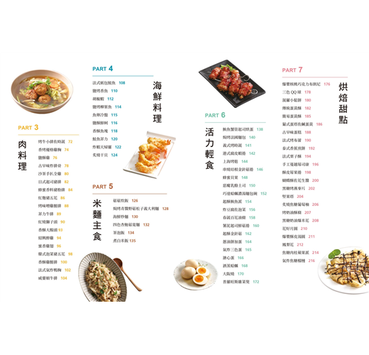 肉類、海鮮、蔬菜、炊飯、湯品、輕食、點心,主食到甜點、夜市小吃到創意料理,超簡單不失敗一次學會!