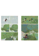 〈旱溪〉描繪童年初見死亡後內心無以名之的震撼與溫柔回應;〈家紋〉則雙線並陳地敘說蚊子母親與人類母親面對繁衍下一代的情感掙扎;〈緞帶〉描繪的是「思念殺人」之奇想,刻畫愛情的傷逝和回憶之不絕。可以說,《小輓》裡的三篇故事,是阿尼默關於「小小的死亡」之圖像輓歌。