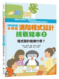 第1冊《什麼是程式設計?》 .本書的目標 .察覺生活中的程式設計 .去超市買東西 .大家一起找找看:哪些東西含有程式設計? .自動販賣機的程式設計 .自動駕駛汽車的程式設計 .智慧型音響的程式設計 .給指導者:不插電的程式設計體驗——五合一機械編程機器人 第2冊《程式設計能做什麼?》 .本書的目標 .找出程式設計能做到的事 .機器人會寫作業嗎? .迷宮遊戲:程式設計做得到嗎? .網際網路的搜尋功能 .自然災害模擬 .加入AI的醫療系統 .給指導者:以程式設計來增添生活樂趣吧! 第3冊《程式設計大挑戰》 .本書的目標 .學會程式設計的方法 .小幫手的大挑戰 .撲克牌小遊戲:以程式設計搜集愛心卡片 .程式設計師的工作①:製作遊戲軟體 .程式設計師的工作②:防範網路攻擊 .給指導者:臺灣中小學程式設計教育現況和教具簡介 第4冊《一起來學程式設計》 .本書的目標 .以程式設計將創意化為現實 .在學校裡尋找寶箱 .以「Micro:bit」來玩程式設計的遊戲 .大家一起做做看!:●LED名牌 ●甩骰子 ●猜拳遊戲 ●揮棒次數計算器 ●音樂盒 .電腦的構造 .電腦的語言 .電腦的通訊系統 .給指導者:一起來玩「micro:bit」吧!