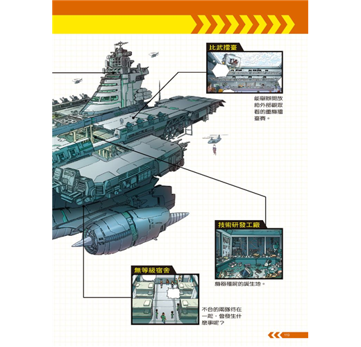 ✔場景設計及分鏡草稿公開重機戰艦和魔裝戰艦的構造,以及故事中各個場景的設定圖!透過這些草稿圖,告訴你漫畫是怎麼畫出來的,分鏡稿、黑白稿和上色稿有什麼不同?