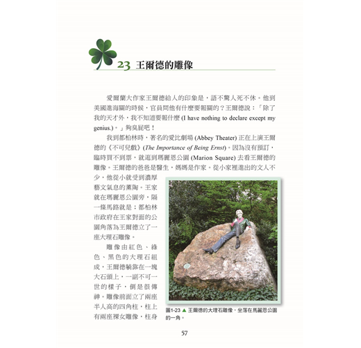 無論是散文,或是學術論文,都可感受作者將嚴謹的文學理論,透過通俗的旅遊紀實文字,以分享知識的態度讓文學研究融入日常生活的現實當中,進而達到學術的淑世功能。總而言之,無論是對正要啟程出發前往愛爾蘭的旅人,或是已經熟門熟路的「巷裡人」,此書不只可以指路,還可做為參照生命位置的文化/文學地圖。