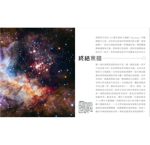 本書以太空望遠鏡和世界各地地面天文臺的最新觀測數據和拍攝畫面繪製編寫,並透過3D圖形切割出天球上88個星座的分布位置,以全面視覺化的方式呈現出完整的宇宙動態和空間結構,讓你對恆星獲得前所未有的認識,是天文迷的必備參考書。