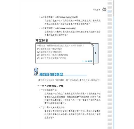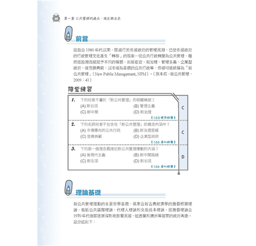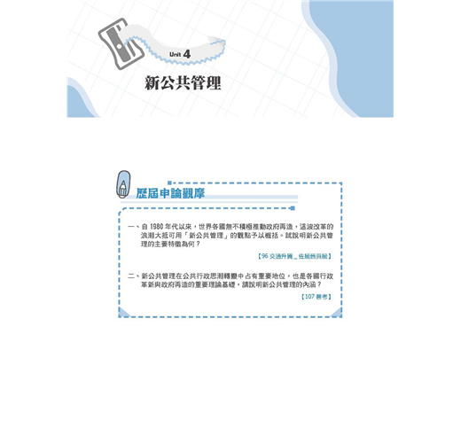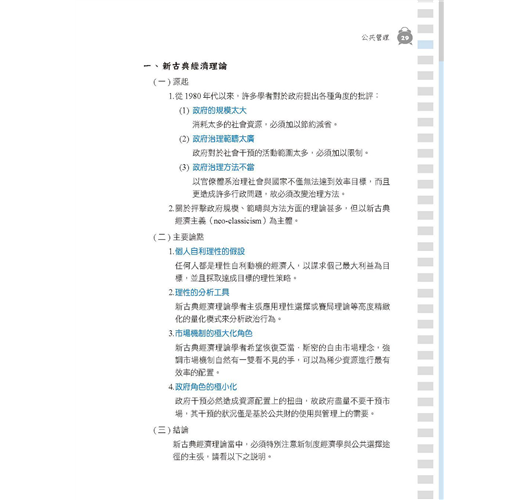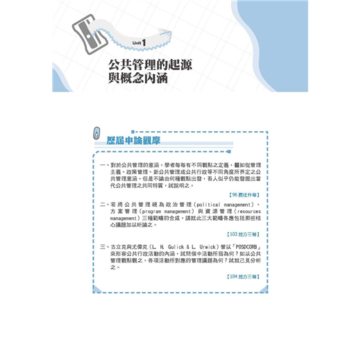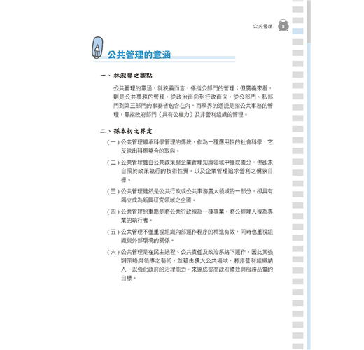 ◎行政學、公共管理:為相近的學科,建議同時複習,彼此間能融會貫通,且行政學教到的部分在公管學再看一次,有加強記憶、事半功倍的效果。
