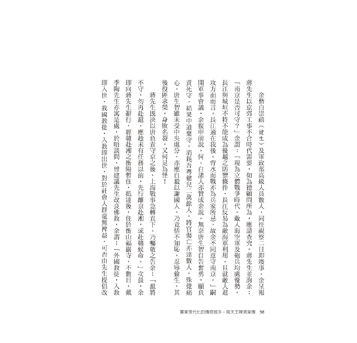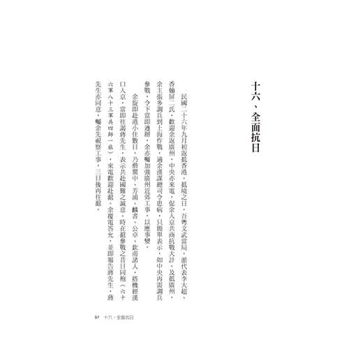 ★本書是作者對其一生事蹟簡明扼要地回憶,其中包括辛亥革命、廣東革命根據地統一、北伐、抗戰、國共內戰。