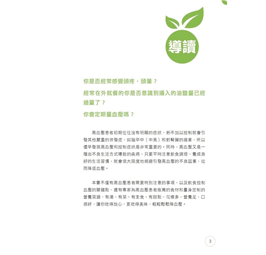 本書不僅有高血壓患者需要特別注意的事項,以及飲食控制血壓的關鍵點,還有主任醫師和營養師為高血壓患者推薦的食材和量身定制的4周飲食方案,有湯、有菜、有主食、有甜點,花樣多,營養足,口感好,讓你吃得放心,更吃得美味,不再擔心怎麼吃和吃甚麼的問題,輕輕鬆鬆降血壓。