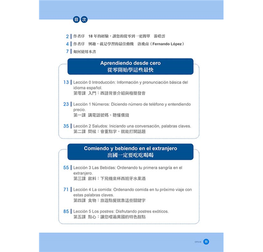 誠心希望這本教材,能幫助對西班牙語有興趣的您,在從零到一的這個階段,走得順暢而有成就感。