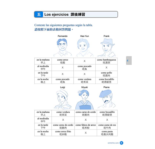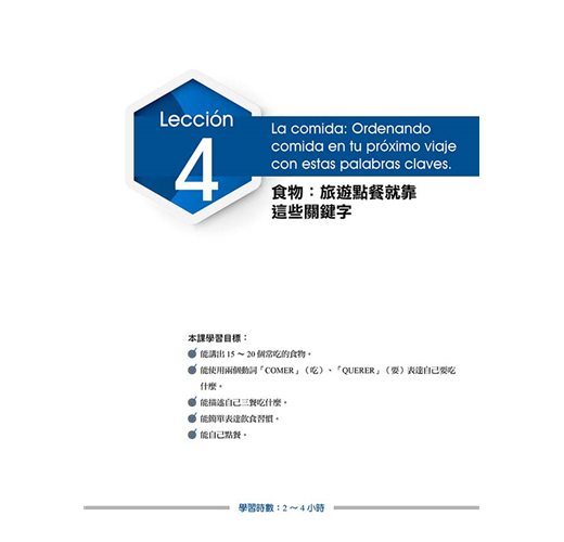 至於例句和主題的選擇上,使用台灣學習者熟悉的「中性情境」,像是買飲料、點餐、跟朋友見面、安排週末行程等等,在初學階段,學習者只要掌握通俗的基本款內容即可,十幾個西語國家的特殊用字、說話方法等等,可以等到基礎穩固之後,再依照個人不同的需求選擇性學習。