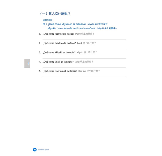 Para ayudar a los estudiantes a mejorar su aprendizaje, hemos grabado las oraciones y diálogos tanto en español como en chino. De tal forma que los estudiantes puedan escuchar y repetir las oraciones, sabiendo el significado de lo que están diciendo. Y que puedan escuchar incluso cuando hagan ejercicio o se encuentren conduciendo. Es decir, aquellas ocasiones en que el estudiante no tenga el libro a la mano.