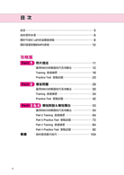 從「贏得990分的解題技巧及攻略法」和「Training基礎練習」兩部分學到的,就用寫實戰試題來確認!每單元的「Practice Test實戰試題」要你將前面學到的解題技巧,實際運用在考題上,累積手感!