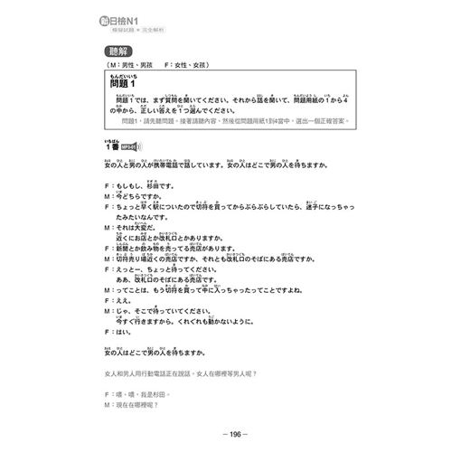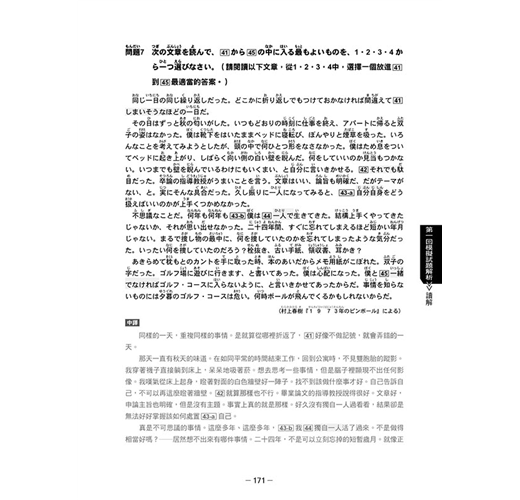 ‧翻譯與解析部分,由輔考經驗十五年以上的王愿琦老師,就「言語知識」、「讀解」、「聽解」各科目的每一題,做詳細、精湛的解說,助您徹底攻略每一題,新日檢高分過關!