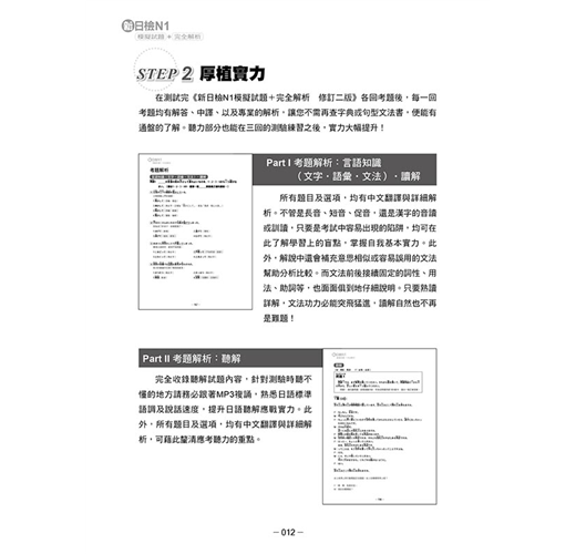‧掌握新日檢施行至今出題方向的細微變化,模擬試題也要與時俱進,唯有不斷調整、更新,才能帶給所有新日檢的考生最精準、最有效的模擬試題!