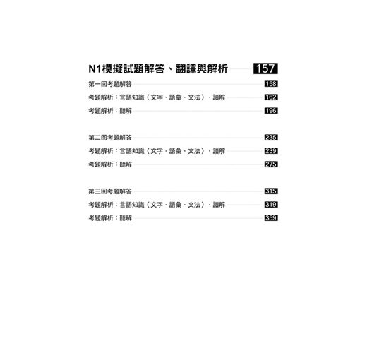 新日檢計分方式與舊制不同,各科都必須均衡發展,才能合格。本書每回測驗都有解答與詳細試題分析解說,幫助考生找出盲點,完全精通N1程度的日語。