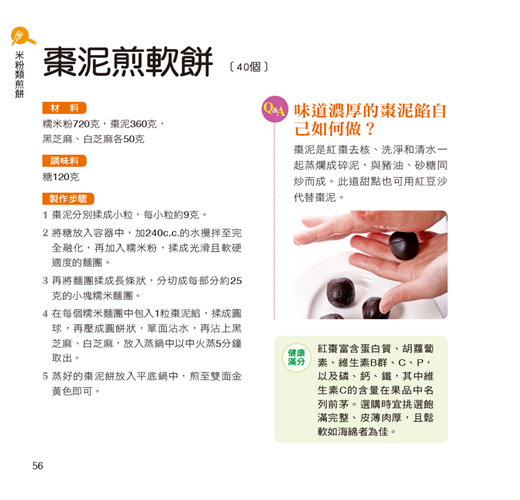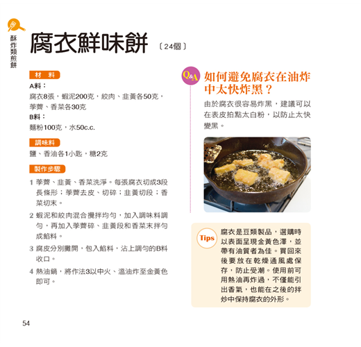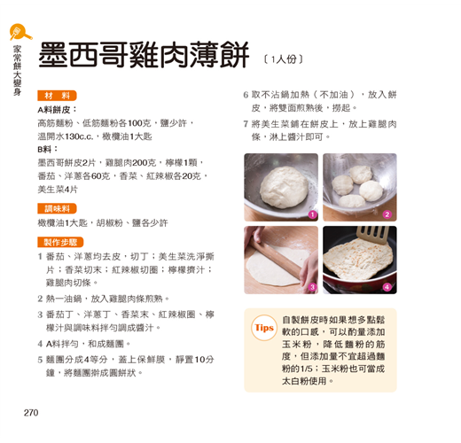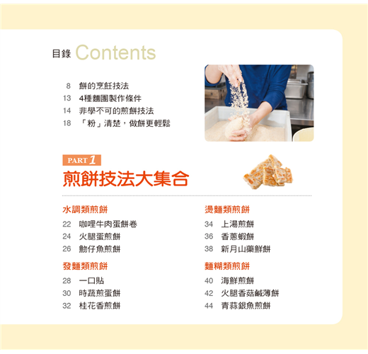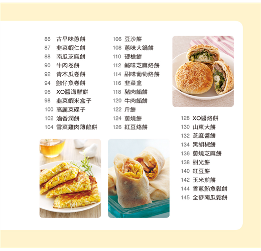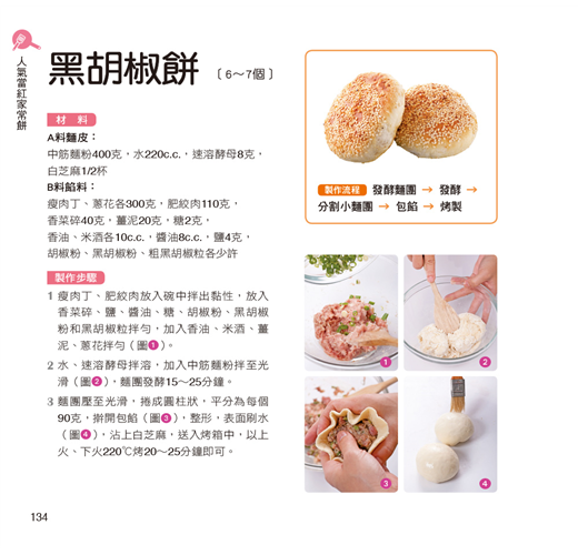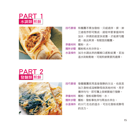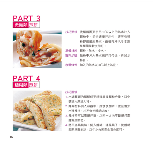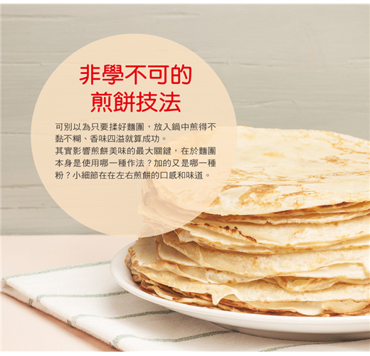 ★ 食譜作法步驟清楚,配合技法,對技巧要領、準備材料、攪拌步驟、水溫條件詳細解說,就能做出不黏不糊、香味四溢的家常餅。