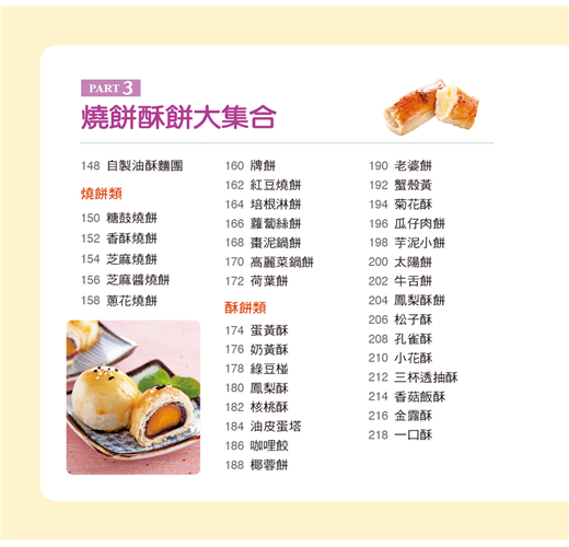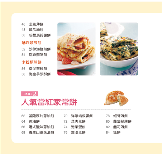 ★ 內容分為煎餅技法大集合、人氣當紅家常餅、燒餅酥餅大集合、家常餅大變身等四大類,收錄130種煎餅、家常餅,方便讀者根據口味喜好,挑選喜愛的食譜製作。