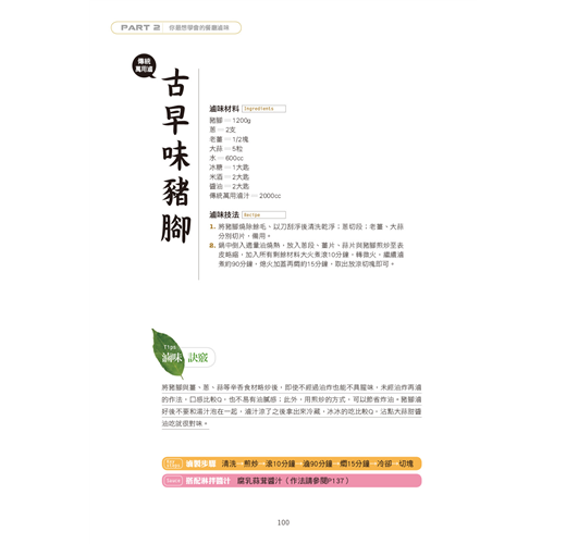 處理技法˙材料選擇˙入味刀工˙燉滷時間˙滷製鍋具…各種技法告訴你。