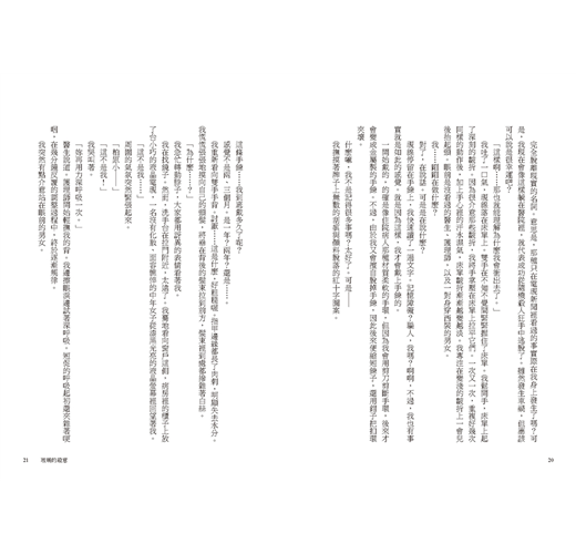 我剛看見什麼、聽見什麼,就又都脆弱地崩塌了。我的記憶彷彿像是玻璃一樣。明明知道它確實存在於那裡,卻看不見。