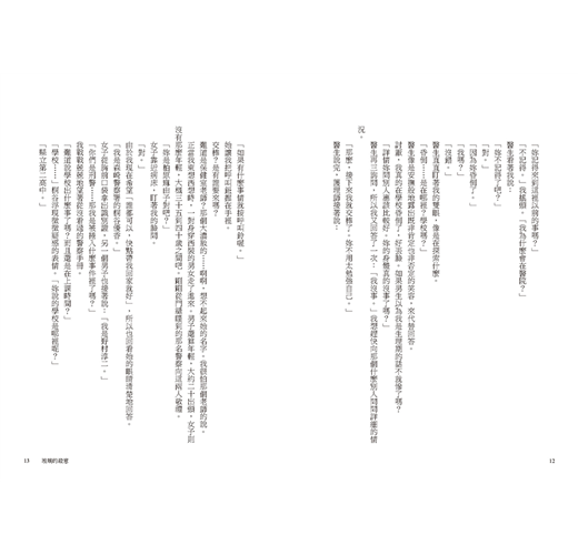 「大約十分鐘到二十分鐘左右啊,妳維持記憶的時間。其實,關於我們正在進行簡易精神鑑定的說明,我已經說了四次了。」