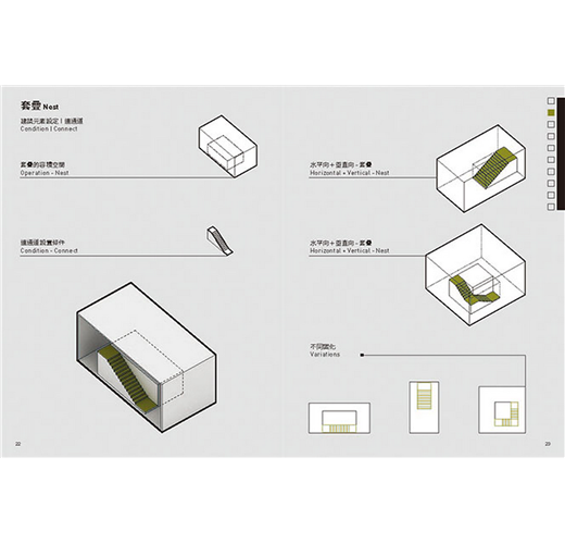《以原有條件創造條件的空間設計》(Conditional Design)更透過連結抽象的容積建構與基本建築元素進一步發展出實作方法。