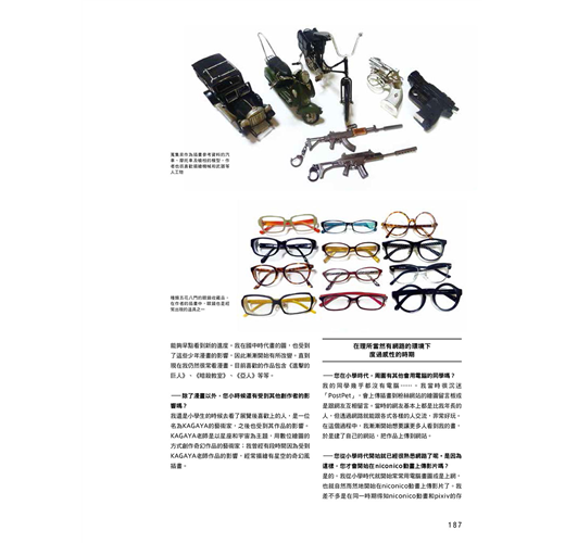 上了國中後,我開始常看《Jump》之類的少年漫畫。在《Jump》之中,我又特別喜歡《獵人》,反覆看了好幾次單行本。每次才剛高興連載重新開始,卻又馬上休刊……我總是很期待能早點看到新的進度。我在國中時代畫的圖也有受到這些少年漫畫的影響,漸漸開始改變。我現在也很常看漫畫,喜歡的作品有《進擊的巨人》、《暗殺教室》、《亞人》等等。