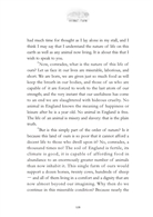 「但這就是命運的安排嗎?這只是因為我們的土地貧瘠得不能讓棲身於此的子民過上體面的生活?不是的,同志們,絕對不是!我們英格蘭的土地肥沃、氣候宜人,它能供給的食物豐饒,即使住在這的動物再多上幾倍也足夠。單是我們的這個小農莊就足夠養活十二匹馬、二十頭牛和上百隻綿羊—而且,都能過上比現在更舒適、更體面的生活,而且超乎我們的想像。那為什麼我們仍持續陷在這種悲慘處境昵?因為人類,我們付出勞動所生產的一切,幾乎全部都被人類偷走了。同志們,這就是問題的答案。歸結成一個詞—人類。人類是我們唯一的敵人。除掉了人類,飢餓和過勞的問題根源也會永遠不再。