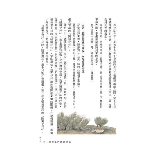 這些關於節氣的詩詞,集中體現了古人對於節氣這個時空座標的深刻理解,也集中體現了古人對於詩詞這個文字密碼的嫺熟運用。在詩人們的吟誦之間,節氣與詩詞般配得絲絲入扣,登對得門當戶對,令今天的我們歎為觀止。所以,我以四季為序,為每一個節氣,選定了我認為最般配、最登對的那首詩,然後把節氣和詩的故事,匯成了這本書。