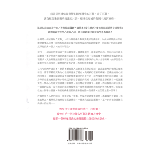 溫世仁武俠大賞作家/專業編劇蒲靜,繼繪本《愛在轉角》後首部原創愛情小說登場!校園青春眾生的心動與心碎,譜出最歡樂也最催淚的青春舞曲!