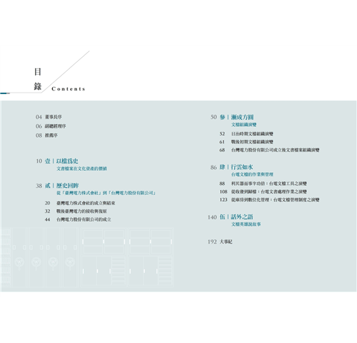 本書以台電文樞與檔案管理制度演變為主軸,加以深入淺出的故事性闡述,析論台電文檔制度之源起,及歷年來於文檔業務與管理制度上之求新求變,探究「文書」與「檔案」核心制度,藉以延伸瞭解台電半世紀以來的文檔業務發展及價值。